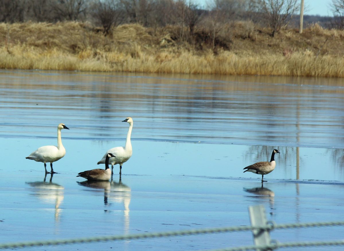 Sharing a peaceful scene on the lake up here in Mahnomen County. All around them was open water, but in the middle of the small lake was a patch of ice, and that is where these birds rested after a morning swim, because they would be safe there from any predators. Picture was taken on Thursday, March 21, in Mahnomen County along Highway 113, near County Road 3.